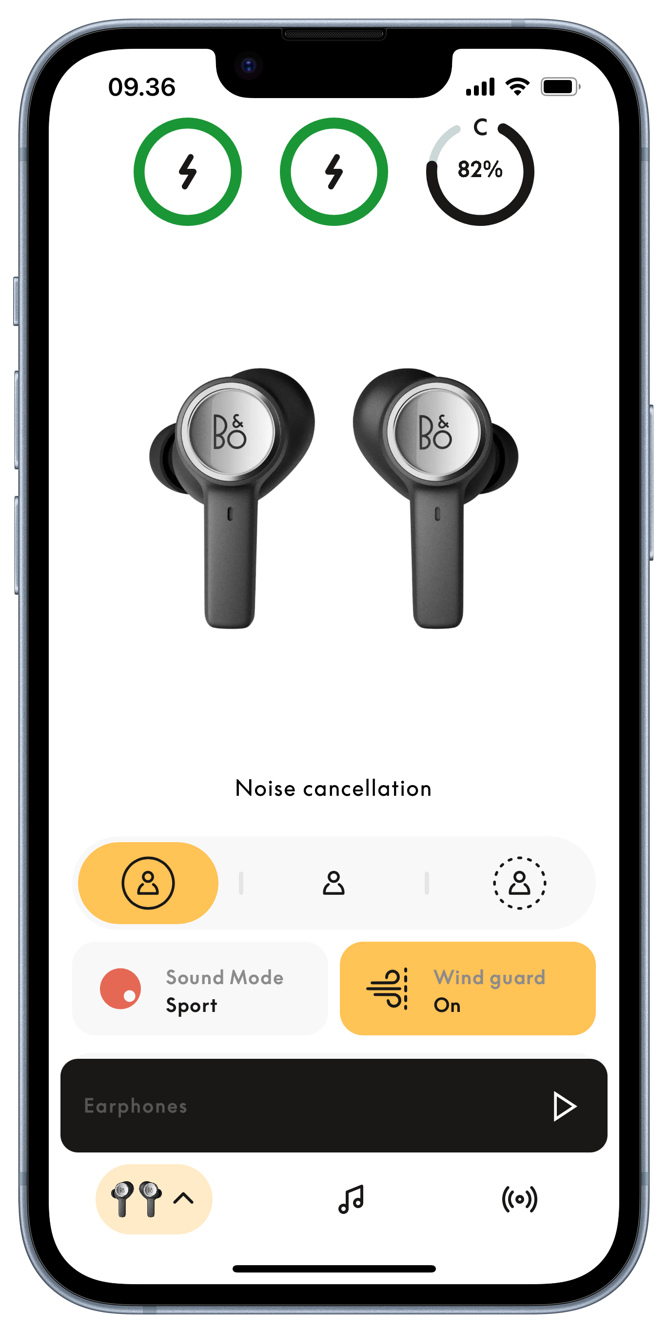 Используйте Beoplay Eleven весь день и дольше: до 28 часов без ANC и до 20 часов с включённым шумоподавлением. Зарядный кейс добавляет дополнительные циклы для длительных прослушиваний.